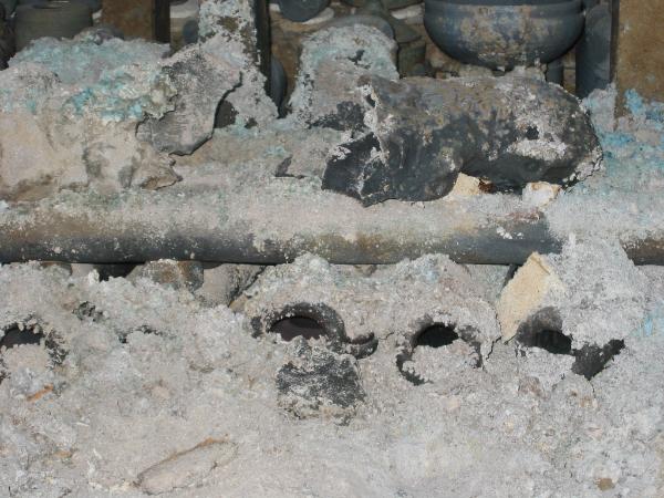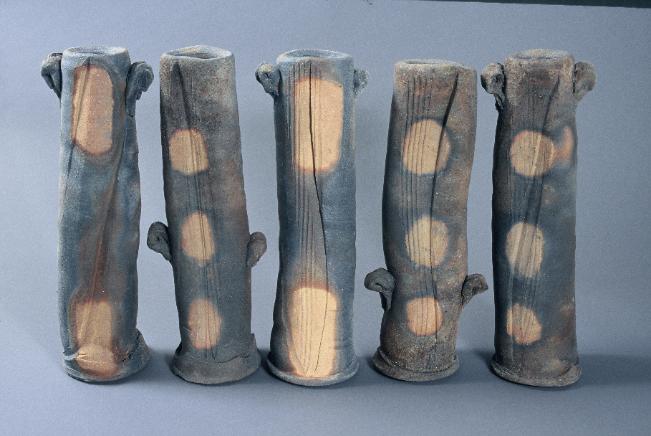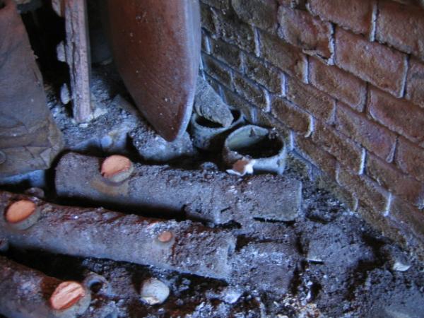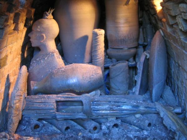 The ceramic "andiron" as it appears before unloading. The vases are buried in ash.