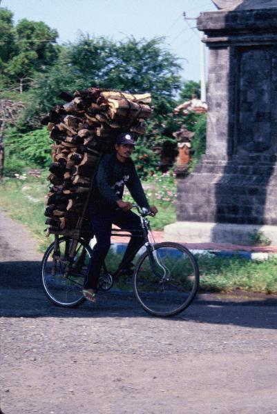 of wood on a bicycle. This image has
